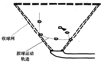 3)對1號機組收球網進行檢查發現收球網的柵格上卡有部分膠球,膠球在收球網上已變形,卡粘的膠球已使得凝汽器循環水出口壓力上升0.02MPa?此外收球網底部膠球管道也已被膠球完全堵住,這也是1號機組收球率為0的原因。通過與設備廠家的分析,并進行膠球在收球網中的水力模型試驗(見圖1),判斷出由于凝汽器循環水出口壓力偏高(一般凝汽器循環水出口壓力為0.1MPa,而本公司凝汽器循環水出口壓力是0.12MPa),造成膠球在收球網內部因速度過快沖擊收球網柵格而旋轉,不能及時且順利的落入收球網底部,被及時送入收球泵入口,使得膠球回不到裝球室,致使該裝置收球率很低。