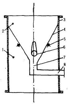 I~3同圖34一網(wǎng)板5-軸6一導(dǎo)流翼7-集球箱8一膠球引出管