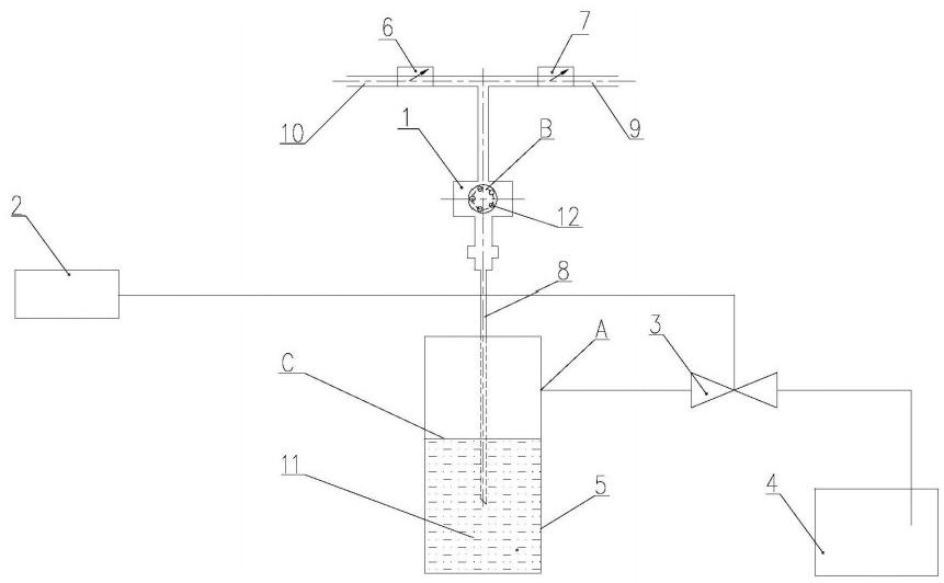 儲液器,其內(nèi)承裝有液體,儲液器上具有入口;裝球室,其內(nèi)具有容置膠球的腔體連通管路,其與裝球室連通,并自裝球室延伸至儲液器內(nèi)的液體液面以下;進(jìn)球管路,其與裝球室連通;出球管路,其與裝球室連通;壓力介質(zhì)供給裝置,其通過管路與儲液器的入口連接,以向儲液器內(nèi)輸送壓力介質(zhì)。