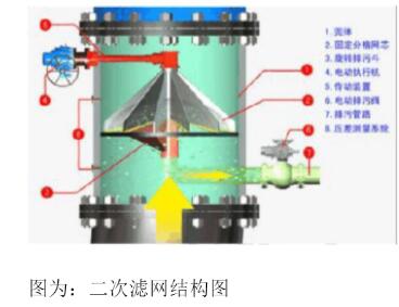 該二次濾網(wǎng)工作原理,水流在殼體內(nèi)部