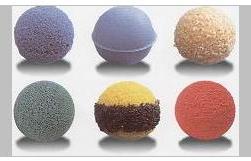 金剛砂膠球:金剛砂膠球分為全金剛砂膠球和半金剛砂膠球兩種。金剛砂膠球適用于清除各種結(jié)垢沉積較多的管道,但對管子有傷害,一般不長期使用,特別銅管更慎用。有效去除硬質(zhì)結(jié)垢,如:碳酸鈣。適用于鋼管、不銹鋼管換熱器。金剛砂膠球不可連續(xù)在水中長期使用,建議使用兩次后,拿出來放在通風處晾干(不可爆嗮) ,涼3-5天時間,金剛砂膠球的使用壽命會更長。