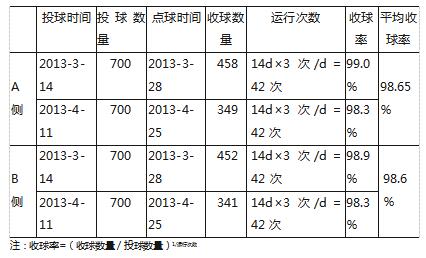 注:收球率=(收球數量/投球數量)1/運行次數