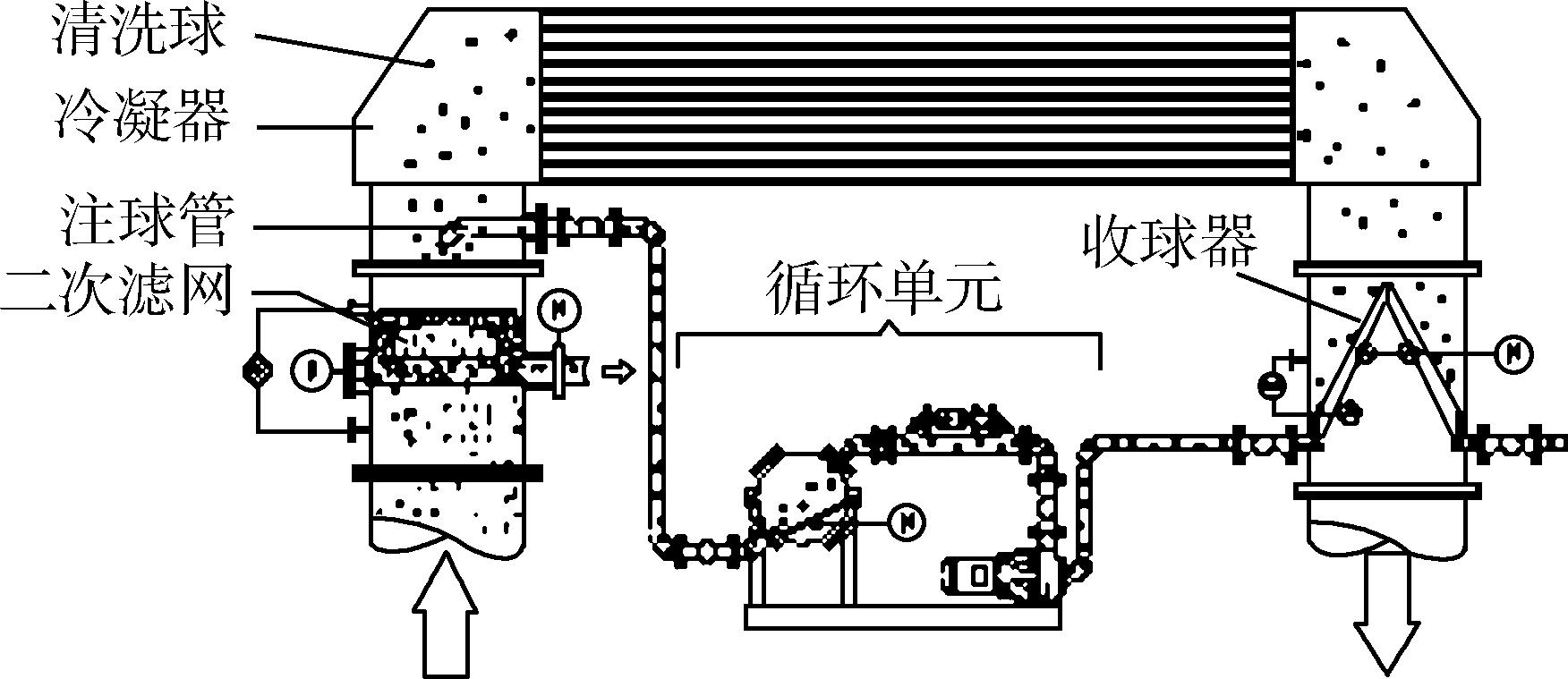 圖1水冷式冷凝器膠球在線自動清洗裝置示意